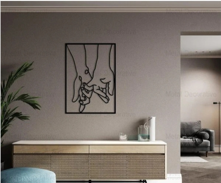 تابلو دیواری فلزی دکوراتیو طرح دست عاشقانه با سبک مدرن جهت استفاده در منزل و یا کافی شاپ می باشد . این تابلو ها از ورق فلزی و توسط دستگاه برش لیزر تولید شده است. سپس در کوره های رنگ با انواع رنگ های مشکی ، سفید و طلایی قابل تولید هستند. نصب این تابلو بسیار آسان می باشد و به راحتی با استفاده از دو عدد پیچ و رولپلاک سایز متوسط می توانید روی دیوار نصب کنید.